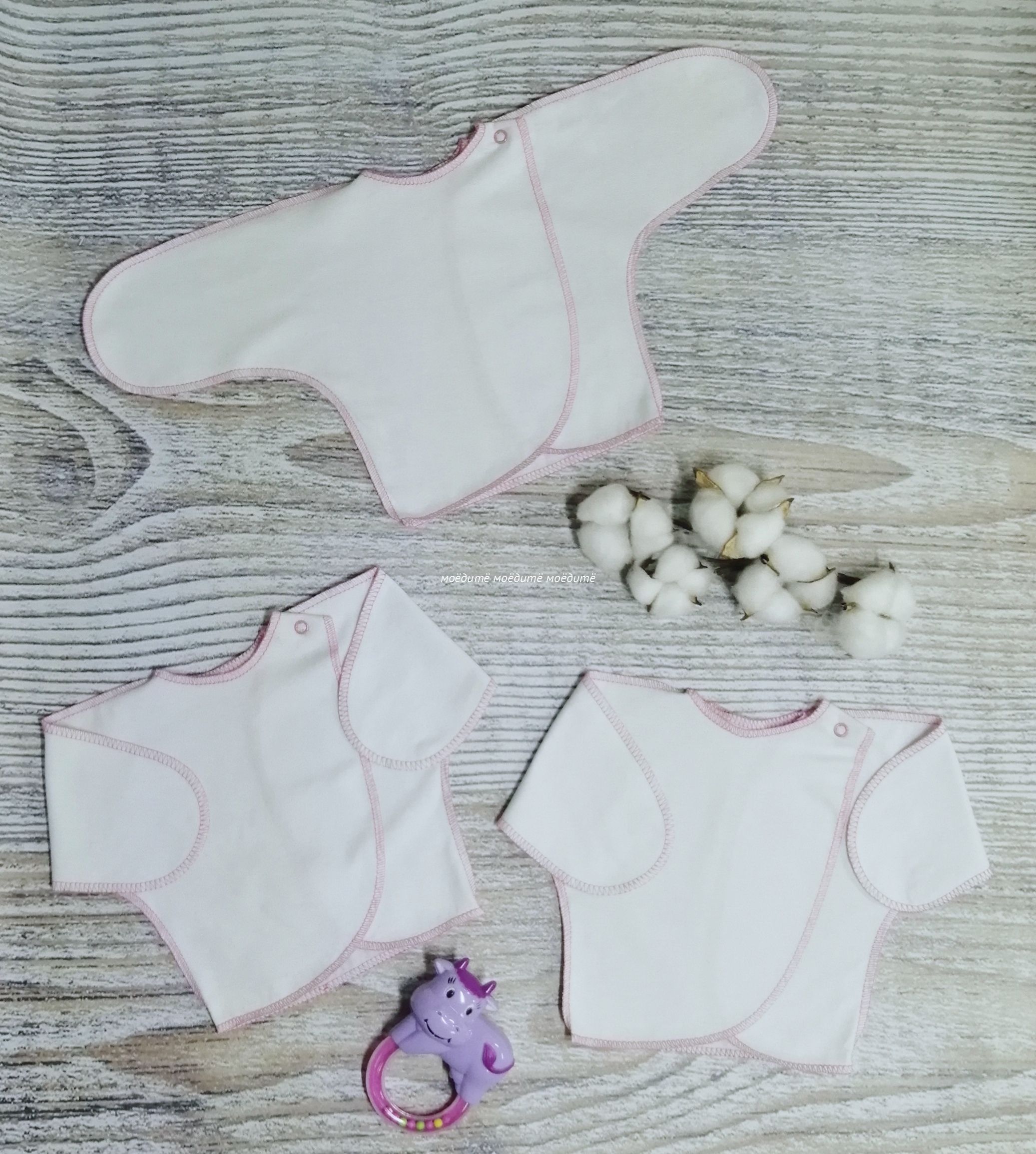 Распашонка с запахом, с одной кнопочкой на одной стороне, с закрытыми ручками. Швы у распашонки выполнены наружу. В комплект к распашонке идеально подойдут "МоёДитё" ползунки "Нарядные" белые с розовым ПК002 "Гардения"