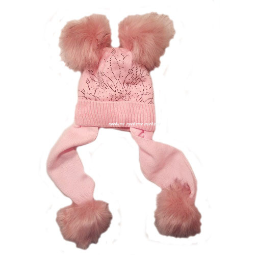Шапка с двумя помпонами, и вшитым шарфом. Шарфик на концах украшен меховым помпоном.
